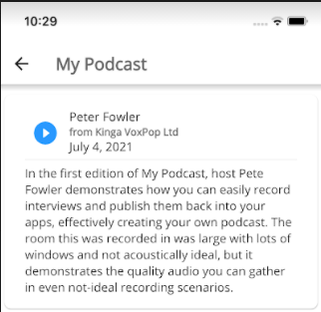 4. Open the app or refresh and the podcast will be playable from the content wire, and subsequent podcasts will be listed chronologically in the “My Podcast” section of the app.